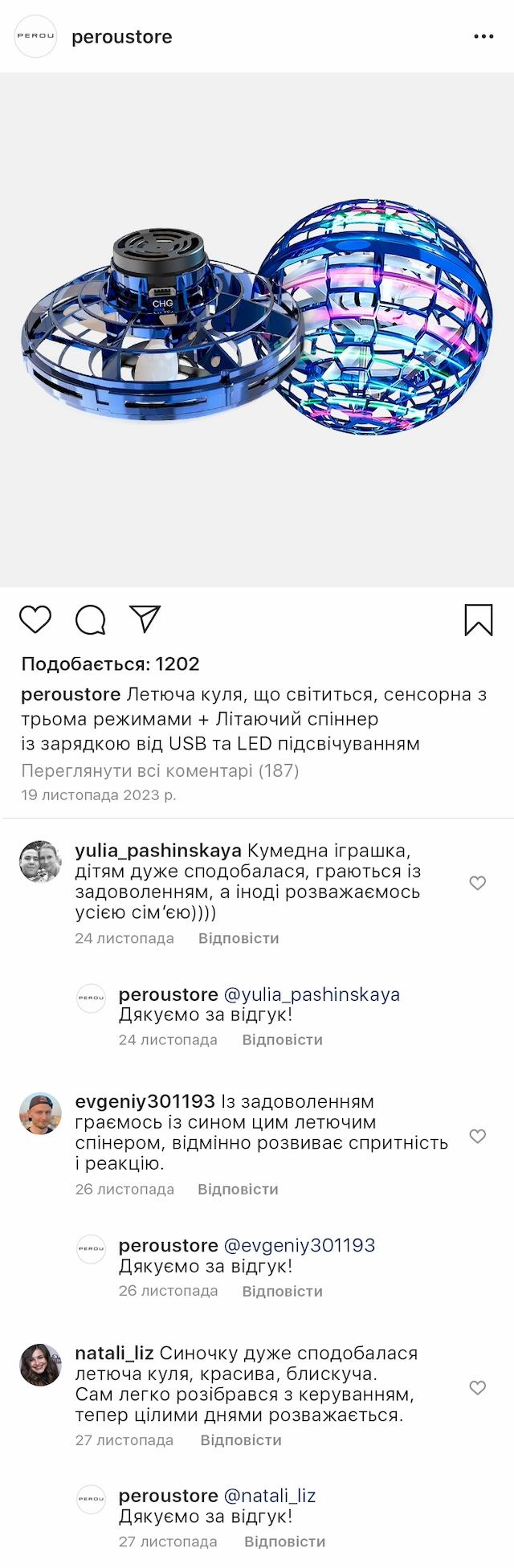 Летючий спінер – це ідеальна іграшка, що розвиває спритність, уважність, швидку реакцію та координацію рухів. Для дитини та її друзів це не лише задоволення та незабутні враження, але й користь у процесі гри вдома чи на вулиці. Спінер оснащений яскравою світлодіодною підсвіткою, ним дуже легко керувати.