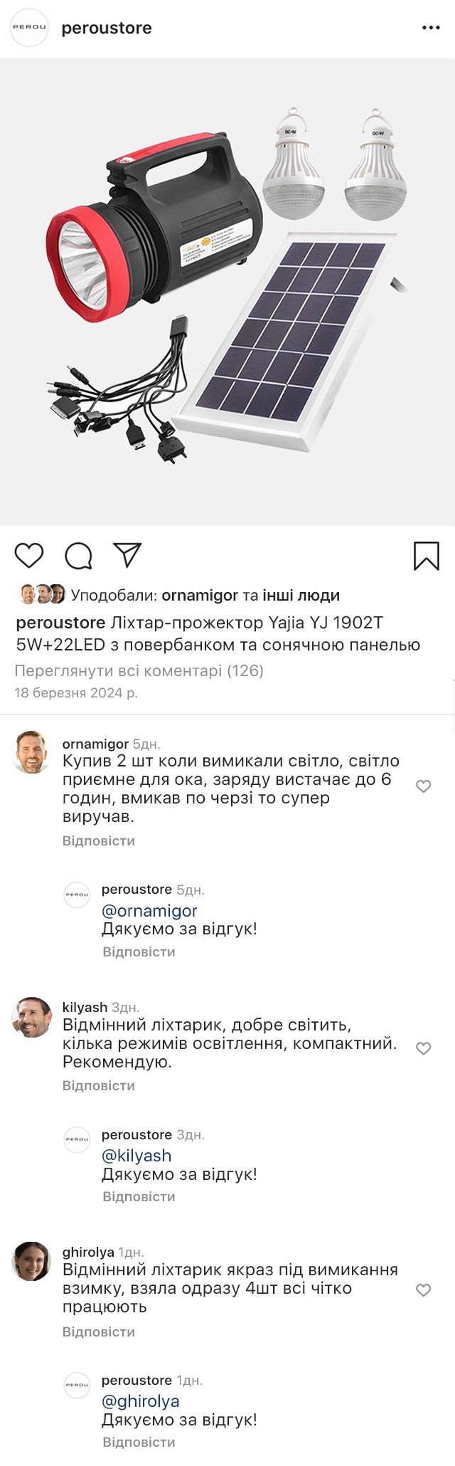З її допомогою можна зарядити телефон або планшет, а також забезпечити освітлення користуючись з вбудованого акумулятора 8000 mAh та сонячної енергії. У лампочках використовуються потужні та економічні світлодіоди білого кольору. Їх яскравості досить практично для будь-яких завдань – чи то читання, чи приготування їжі.
