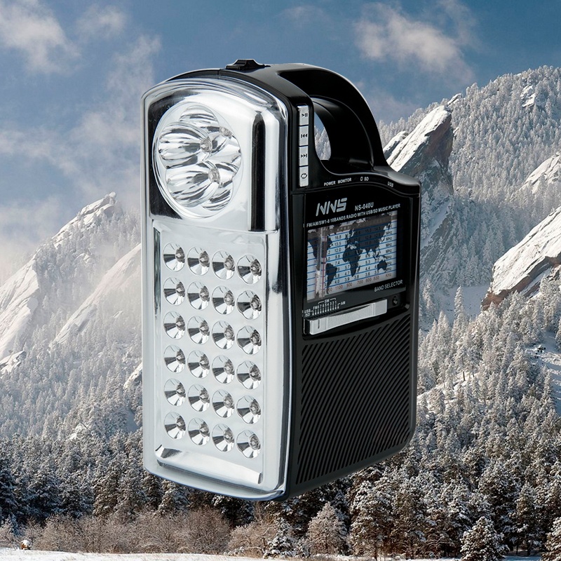 Ліхтар-радіо з програвачем МР3 – це альтернативний варіант освітлення, який допоможе у темну пору доби, особливо при віяловому відключенні світла. Вбудований LED світильник з двома регульованими режимами – потужний спрямований пучок світла та панель розсіяного освітлення – можна використовувати вдома, на дачі, в гаражі, на природі або в будь-якому іншому місці, де немає постійного доступу до електроенергії.