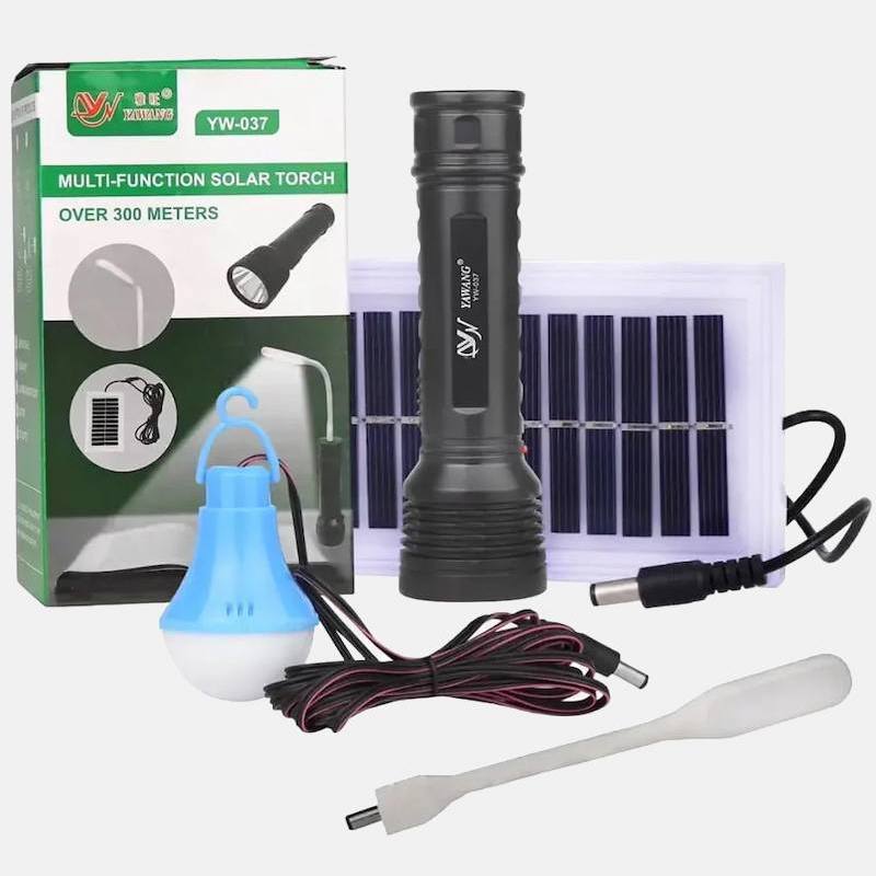 Ліхтар ручний з лампою, сонячною батареєю та гнучкою міні лампою – це автономна система освітлення, здатна забезпечити у темний час доби різними варіантами світла. Ліхтар має дальність світлового променя 200 метрів і три режими роботи – яскравий, помірний та миготливий.