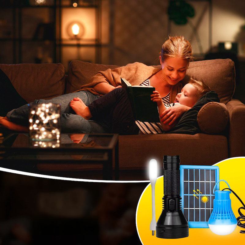 Яскрава лампа на гачку та гнучка міні лампа в комплекті з сонячною панеллю дозволять використовувати їх у будь-якому місці та за будь-яких умов, у тому числі в ситуації відключення електроенергії. Вбудований акумулятор заряджається від мережі або сонячної панелі та безперервно працює до 10 годин при повній зарядці.