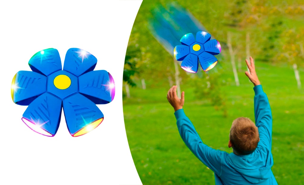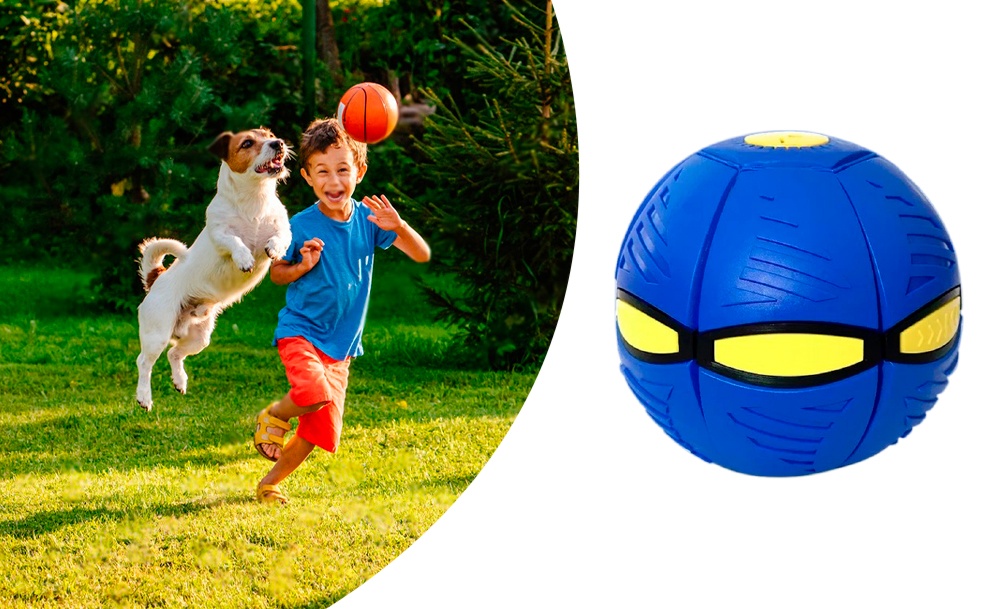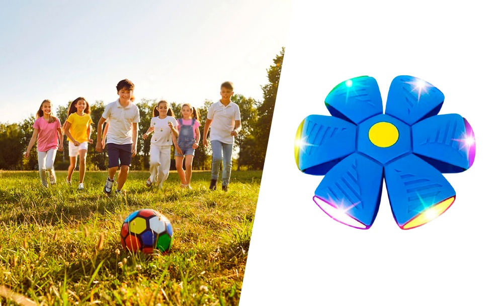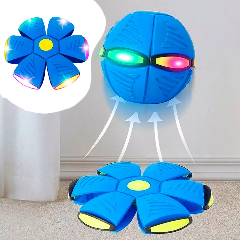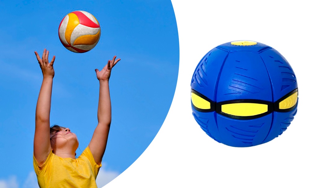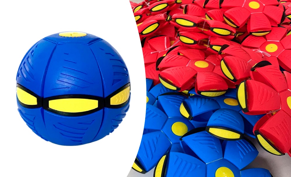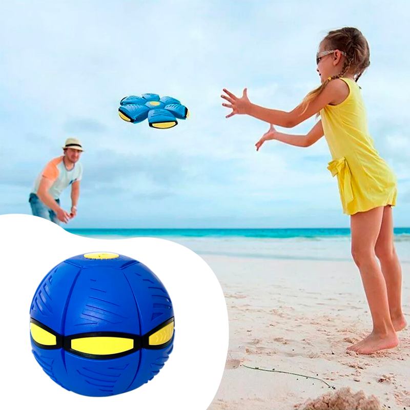 Складаний ігровий м’ячик Flat Ball Disc м’яч трансформер є чудовою іграшкою для активних ігор як на природі, так і вдома. Він дивним чином перетворюється з плоского літаючого диска на круглий м’яч. Натисніть на м’яч, і він знову трансформується в диск, який легко поміщається у сумку чи рюкзак.