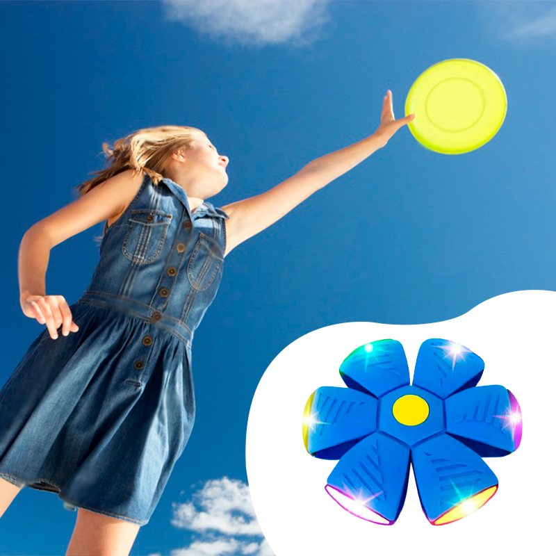 Flat Ball Disc може трансформуватися з диска в м’яч у польоті або при ударі будь-якої поверхні. Стильний, компактний та незвичайний! Фрісбі м’яч призначений для активного відпочинку, спорту, веселих ігор для добрих людей будь-якого віку. Незамінний на природі, у парках, на пляжі та у лісі.