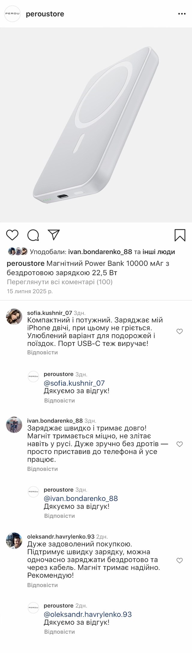 Працює з усіма вашими ґаджетами: iPhone, Android, навушниками, смарт-годинниками. Ідеально підходить для подорожей — не займає багато місця, легко поміщається в сумці чи рюкзаку. Магніт тримає надійно навіть у русі. Можна заряджати кілька пристроїв одночасно. А ще він стильний — чудово виглядає як у руці, так і на столі.