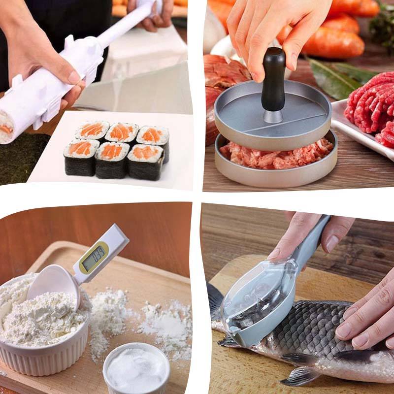 Машинка для суші дозволить вам робити акуратні роли в домашніх умовах. Страва не буде розпадатися, а сам процес приготування займе значно менше часу. Ручний прес для гамбургерів забезпечить ідеальну форму котлет і ваші бургери напевно будуть виглядати не гірше ресторанних.