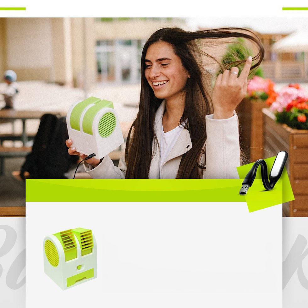 Компактний персональний охолоджувач наповнює повітря навколо вас приємною прохолодою всього за кілька хвилин. Досить тільки взяти кондиціонер з собою, налити в нього води та додати ароматизатор (за бажанням).