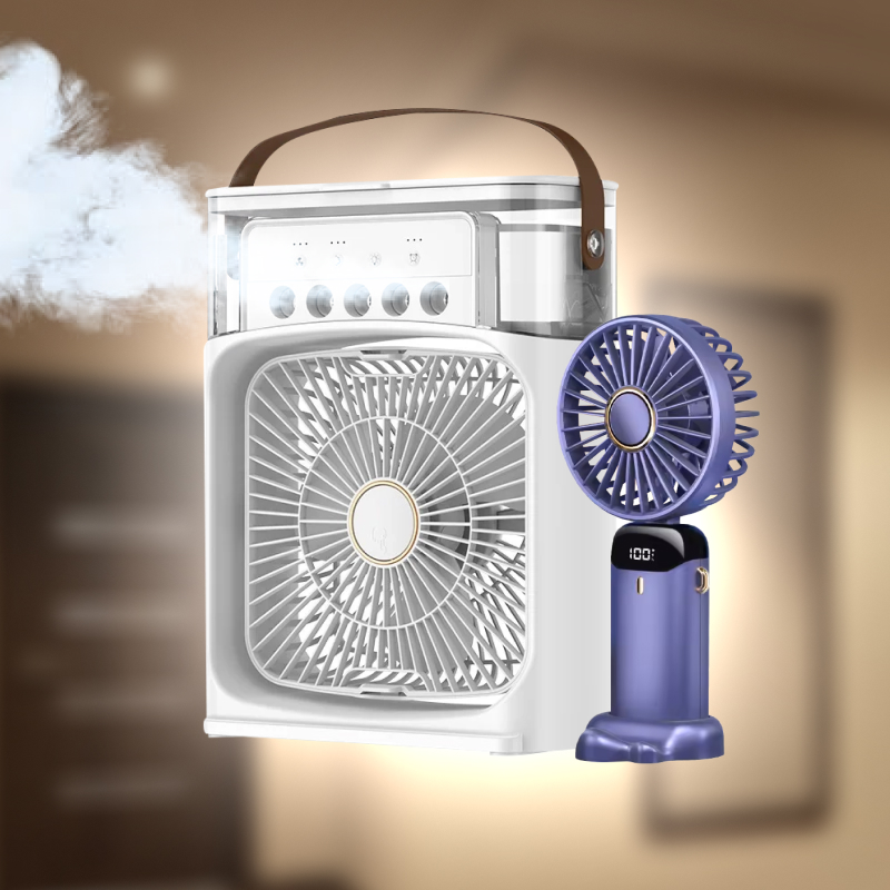 Міні вентилятор з підставкою для телефону та дисплеєм – це персональний настільний USB-вентилятор. У його комплект входить ремінь, за допомогою якого пристрій можна повісити на шию, залишаючи руки вільними. Прилад зручно складається, що дозволяє використовувати його як підставку для телефону.