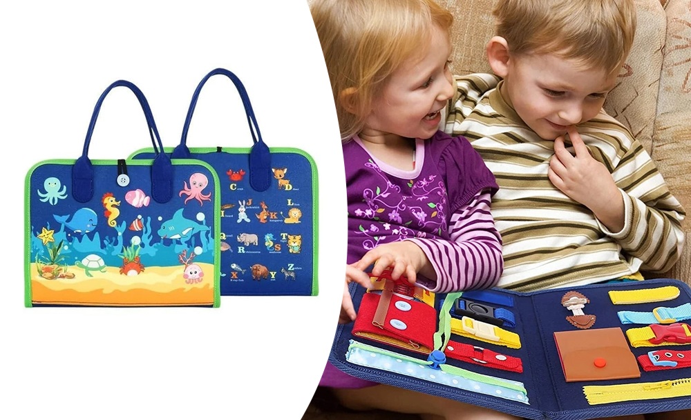 Монтессорі розвиваюча сумка-дошка Busy Board — це яскрава та захоплююча іграшка, яка допомагає малюкам розвивати моторику, логіку та увагу. Кожна деталь дошки продумана так, щоб дитина могла вчитися застібати блискавки, кнопки, пряжки та шнурки, тренуючи при цьому пальчики та координацію.