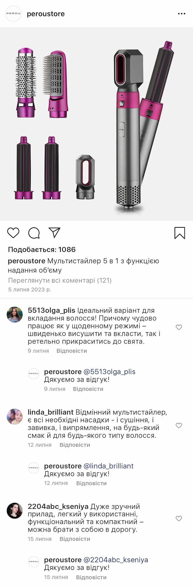 Мультистайлер 5 в 1 – це професійний прилад для догляду за волоссям і створення елегантного образу. Фен оснащений п’ятьма насадками, що знімаються: пре-стайлінг дбайливо висушує волосся, м’яка щітка випрямляє та розгладжує, 2 циліндричні плойки створюють об’ємні локони, щітка-брашинг надає неповторний об’єм біля коренів.