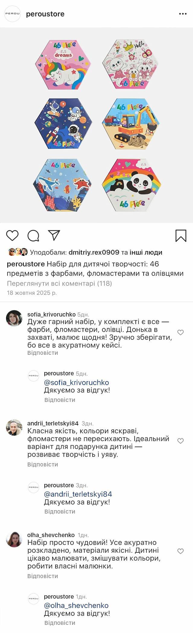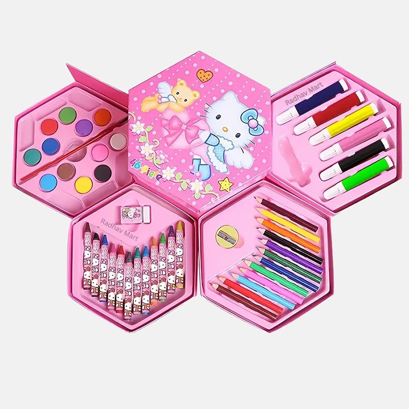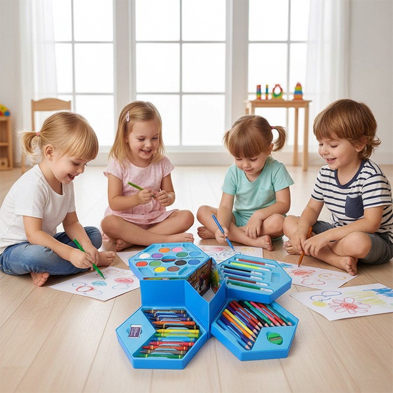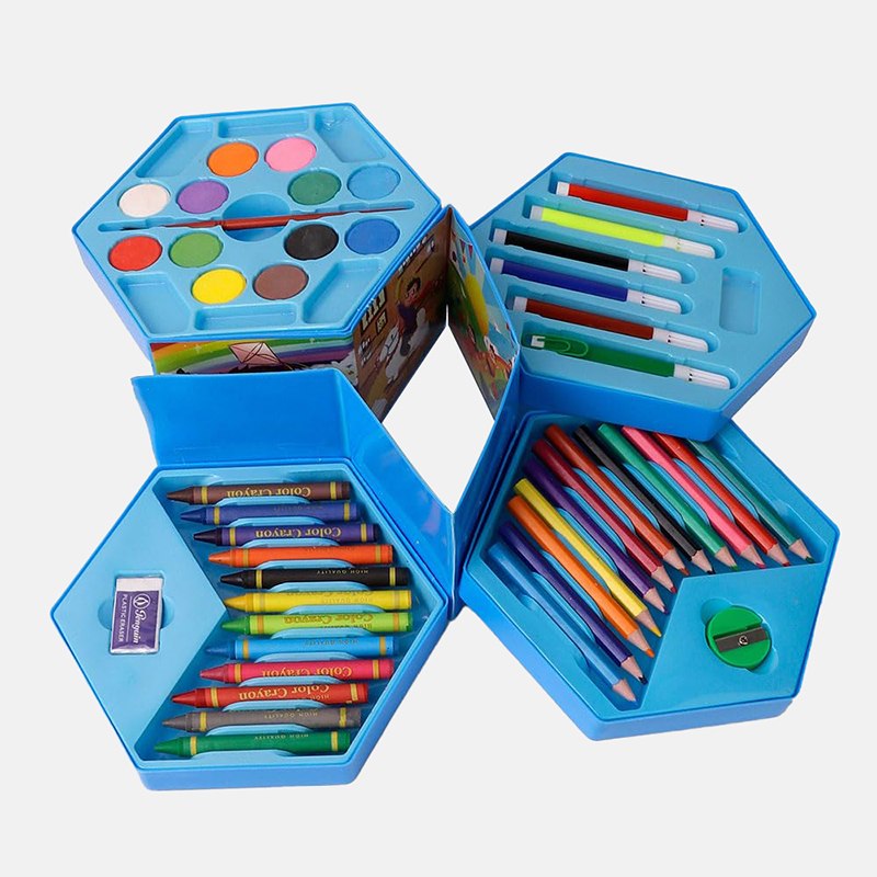 Цей універсальний набір пропонує 46 інструментів для юних художників і художниць. У ньому зібрані основні матеріали для малювання та розфарбовування. Набір розміщений у зручному кейсі для зберігання та транспортування, що допомагає організувати робоче місце.