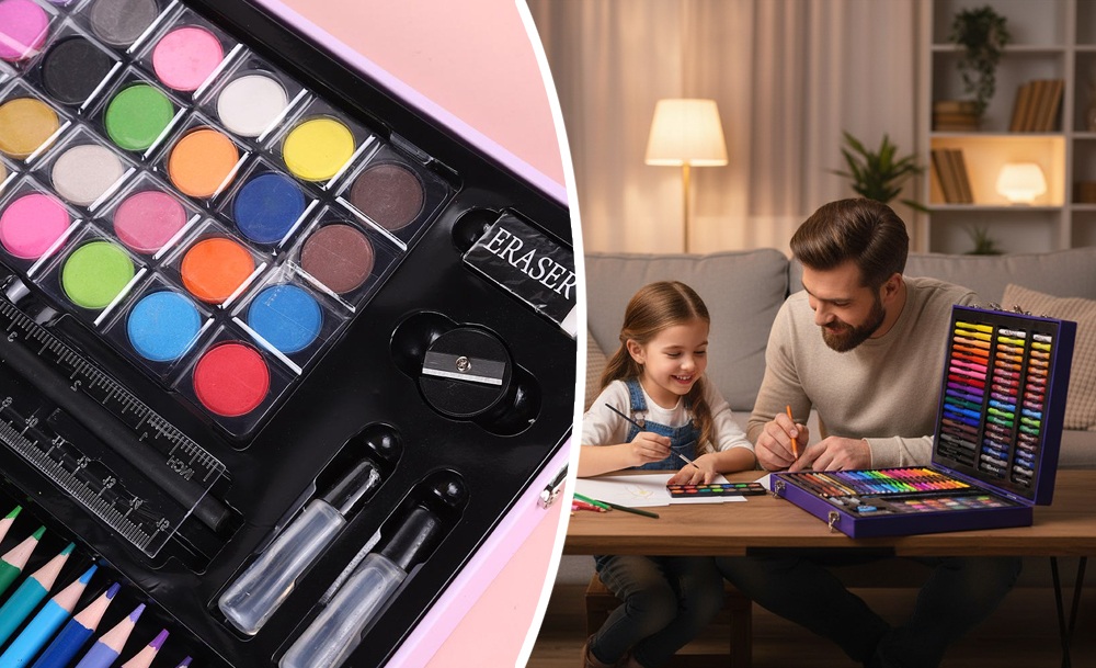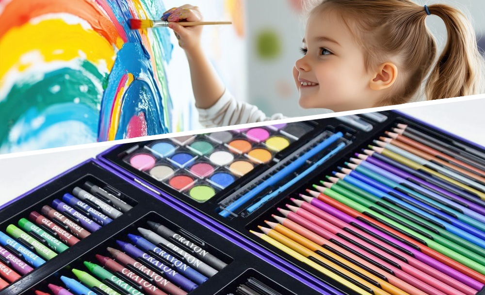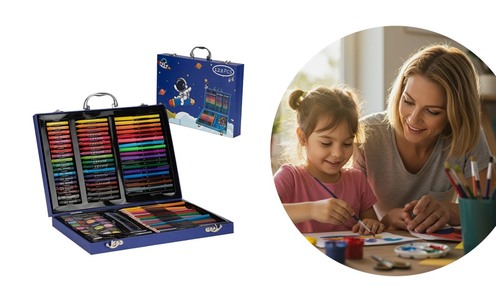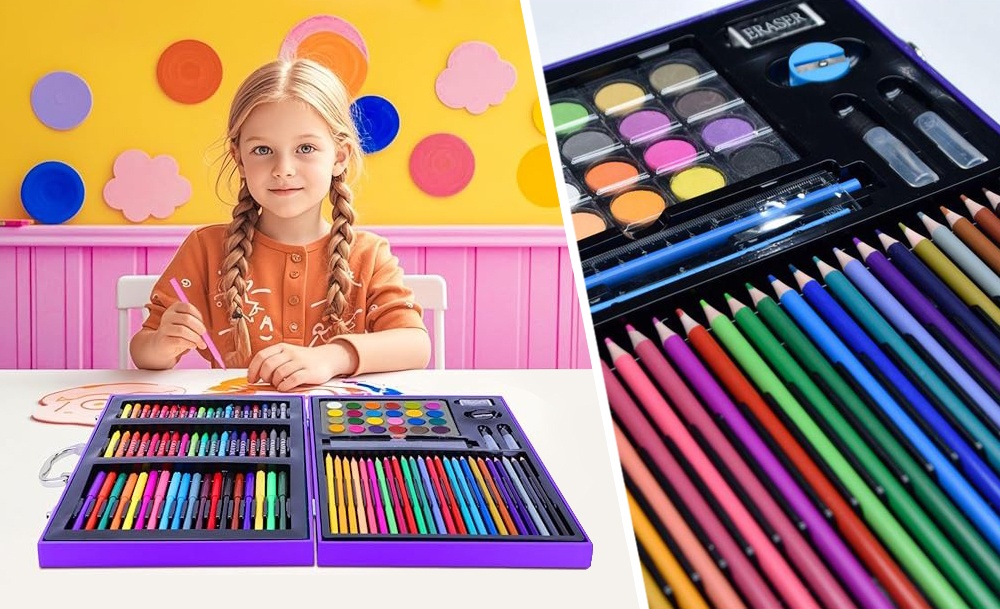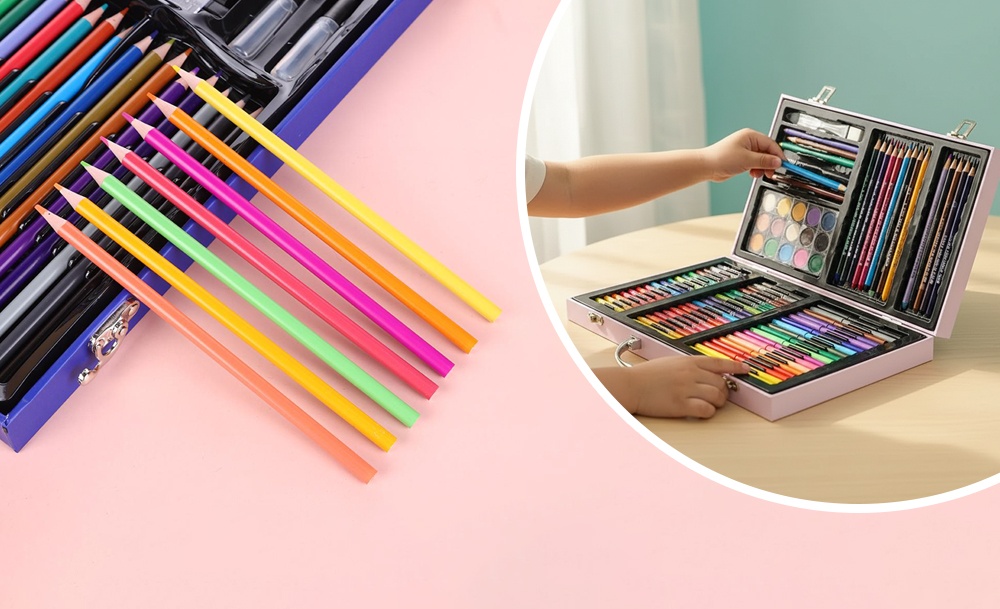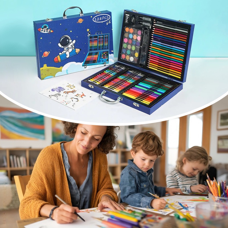 Набір для малювання з 128 предметів у казковому кейсі — це повний комплект для творчості, який сподобається дітям будь-якого віку. У зручному кейсі зібрані олівці, фломастери, воскові крейди, пензлики, фарби та інші аксесуари для малювання та творчості.