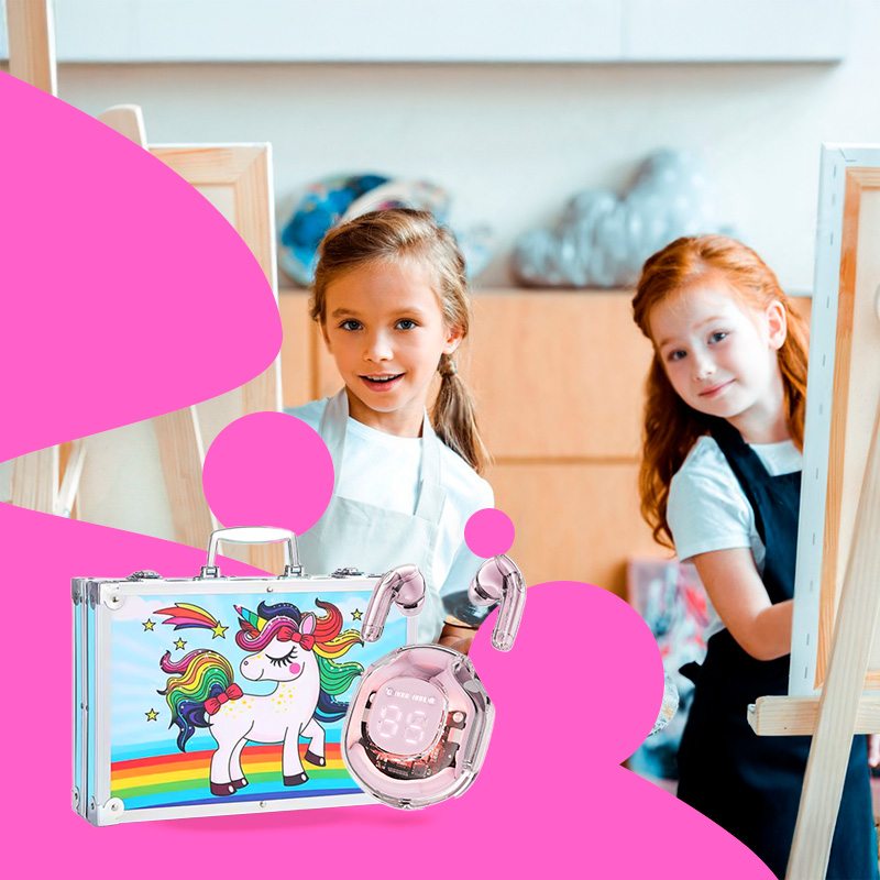 Набір для дитячої творчості та малювання 145 предметів в алюмінієвому валізі єдиноріг у ньому є 145 предметів на всі випадки: кілька видів олівців, фломастери, фарби, дитина зможе спробувати всі стилі промальовування, при цьому ви не витратите зайві гроші.