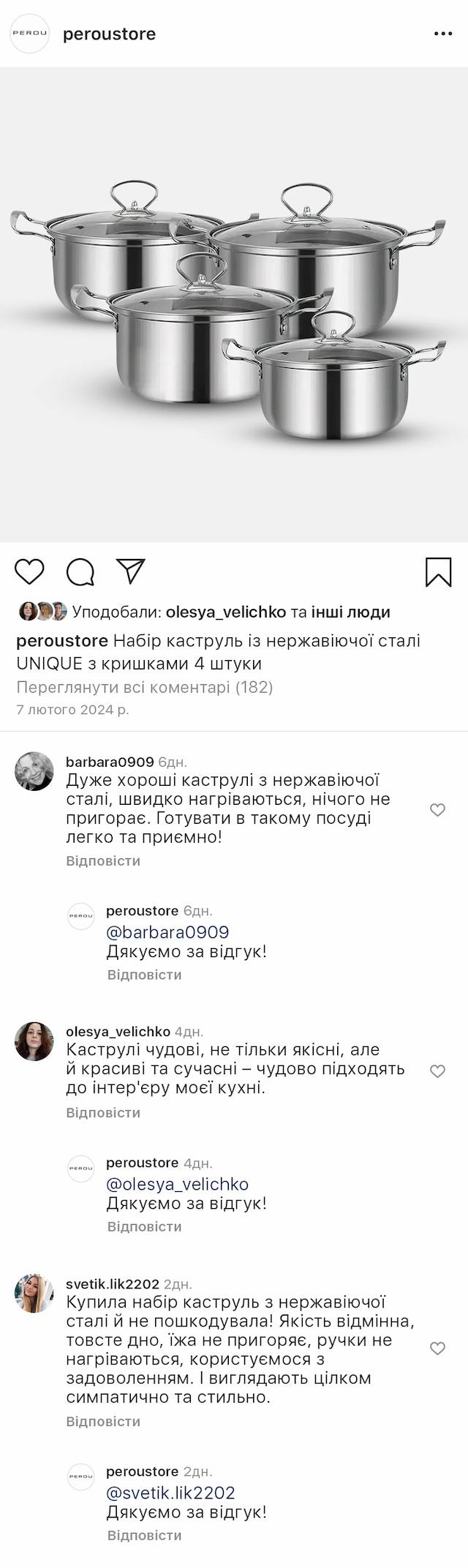 Набір каструль із нержавіючої сталі складається з 4-х каструль різного розміру та об’єму від 1,1 до 3,2 літра з кришками із прозорого термостійкого скла. Високоякісна харчова нержавіюча сталь, з якої він виготовлений, забезпечує рівномірне прогрівання продуктів під час їх приготування й тривале збереження тепла, а багатошарове дно – захист від пригорання.