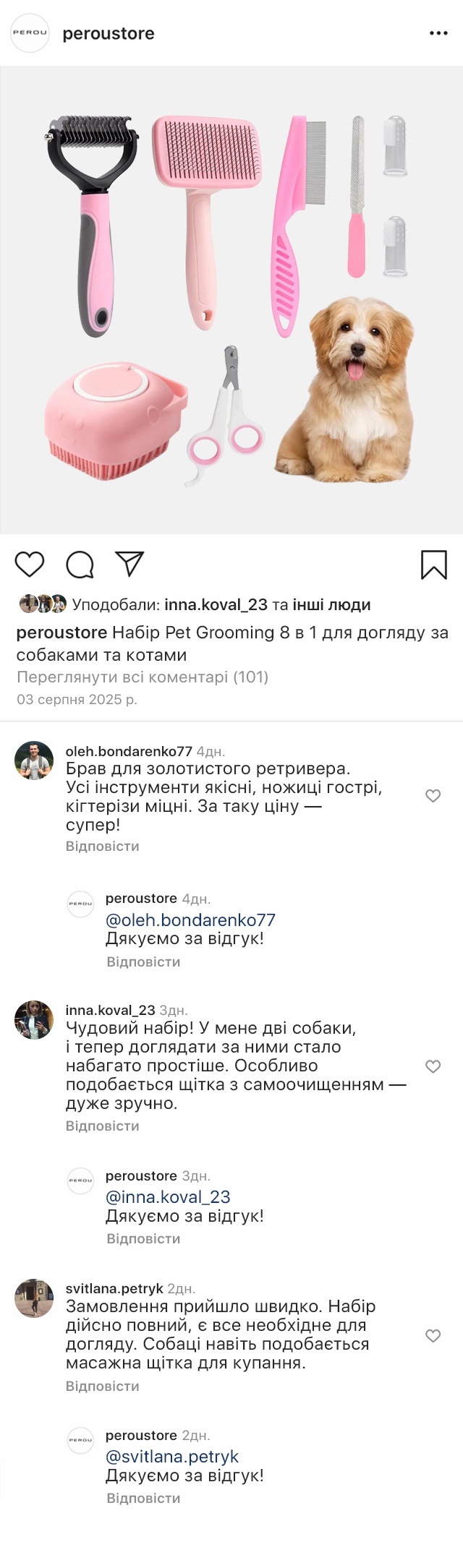 Набір Pet Grooming 8 в 1 — це універсальне рішення для повноцінного догляду за домашніми улюбленцями. У комплект входять усі необхідні інструменти для стрижки, вичісування, підрівнювання шерсті, підрізання кігтів та догляду за вушками і лапками.