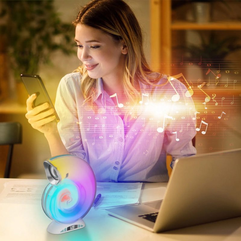 Багатофункціональний пристрій Little Sea Shell L39 допоможе вам розслабитися після довгого дня, увімкнувши спокійну музику та необхідне освітлення для вашого настрою. Вбудований динамік відтворює об’ємний звук, ви можете слухати улюблену музику зі смартфонів. Підключення здійснюється між пристроями через Bluetooth.