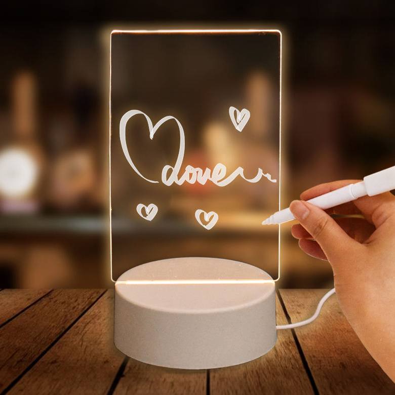 Живлення від USB дозволяє підключати світильник до ноутбука, павербанка або адаптера без зайвих дротів. У комплекті є зручний маркер, а поверхня легко очищується – можна писати й стирати знову і знову. Це ідеальне рішення для робочого столу, офісу, дитячої кімнати або оригінального подарунка до будь-якого свята.
