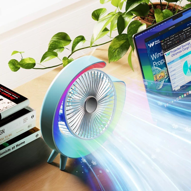 Міні вентилятор RGB – це стильний та функціональний пристрій, який не тільки забезпечить вам прохолоду, але й додасть яскравості та затишку у будь-яке приміщення. Він ідеально підходить для дому, офісу або будь-якого іншого місця, де потрібне ефективне охолодження та атмосферне освітлення.