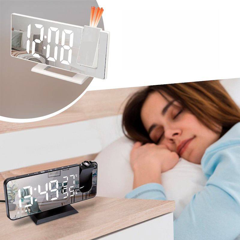 Проекційний годинник із будильником дозволяє не тільки змінити кут нахилу проекції, переводячи проекцію зі стелі на стіну, але також змінити орієнтацію проекції в площині. Тепер немає потреби крутити годинник на столі, щоб домогтися правильної орієнтації цифр.