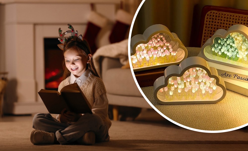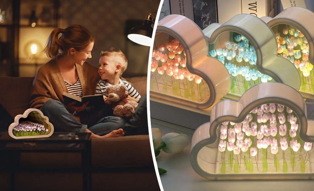 Настільний світильник у формі хмаринки з тюльпанами — це витончена та затишна прикраса для будь-якого інтер’єру. М’яке освітлення створює теплу атмосферу, а декоративні тюльпани надають світильнику ніжності та елегантності. Він ідеально вписується в будь-який інтер’єр, додаючи нотку затишку та стилю.