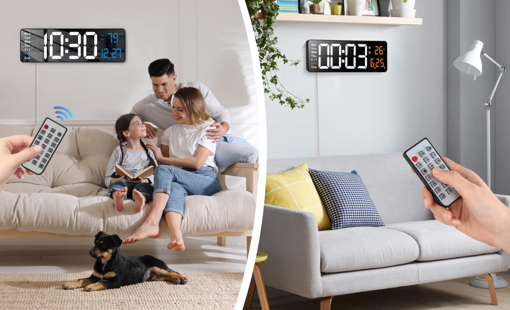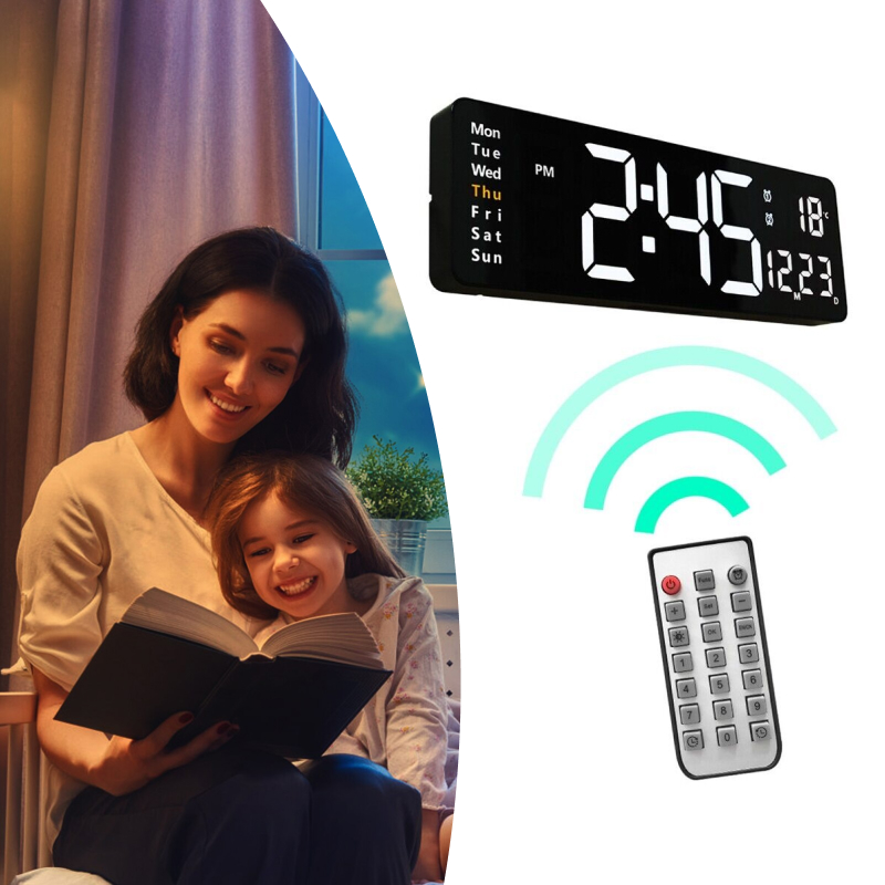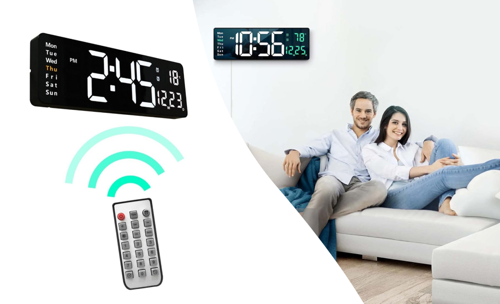За допомогою дистанційного пульта керування можна налаштовувати годинник, без необхідності знімати його зі стіни, а інтегрований термометр допоможе регулювати необхідний температурний режим приміщення.