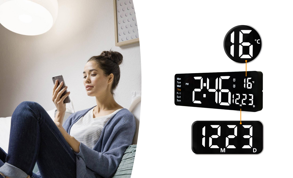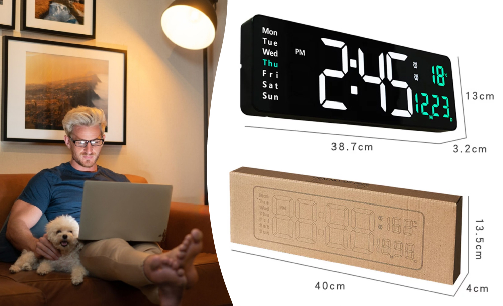 Настінний LED годинник – стильний елемент дизайну у будь-якому інтер’єрі, великі цифри якого видно здалеку, що дуже зручно для великих приміщень. Світлодіодне підсвічування годинника дозволяє дізнатися «котра година?» в темну пору доби. Пристрій обладнано двома будильниками, вбудованим календарем з відображенням дати та дня тижня, що допоможе без особливих зусиль спланувати свій повсякденний час.