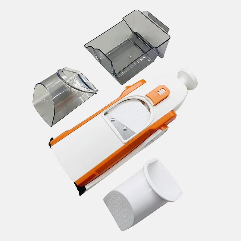 З Safe Slice Mandoline ви зможете ефективно впоратися з будь-якими продуктами, завдяки спеціальним насадкам, які входять у комплект. Цей пристрій працює на принципі механічної м’ясорубки, забезпечуючи швидке та якісне подрібнення без зайвого зусилля.