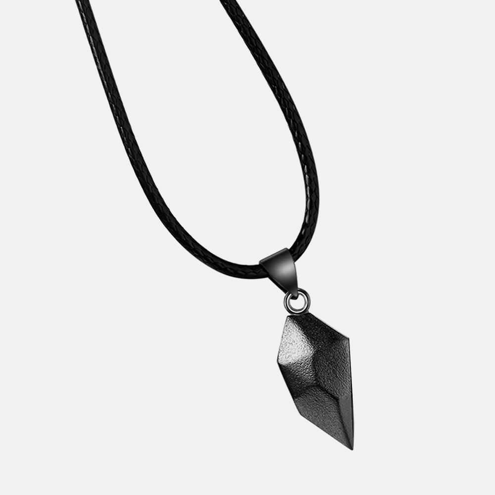Жіночий виріб виконаний із сріблястого сплаву на ланцюжку, виглядає дуже витончено. Чоловічий виглядає агресивно за рахунок того, що зроблений у чорному кольорі і розташований на міцному шнурку.