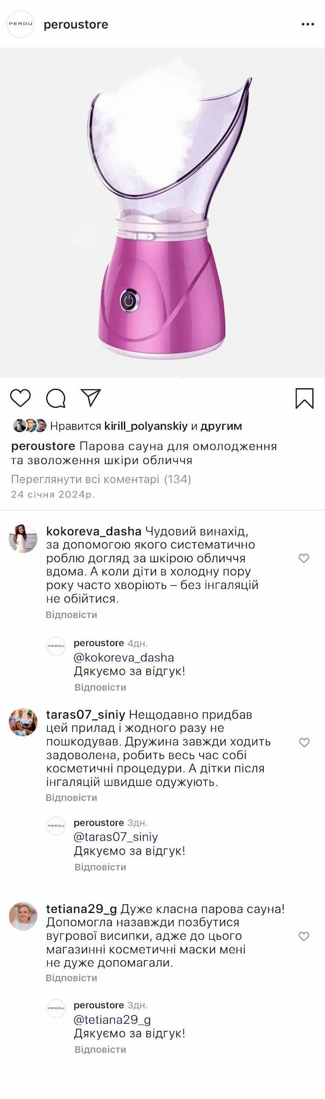 Прилад дозволяє самостійно зробити очищення обличчя та позбутися прищів, вугрів та чорних цяток без послуг дорогих косметологів. У випарну місткість можна додавати аромамасла та насолоджуватися не лише корисними властивостями, але й приємним ароматом.