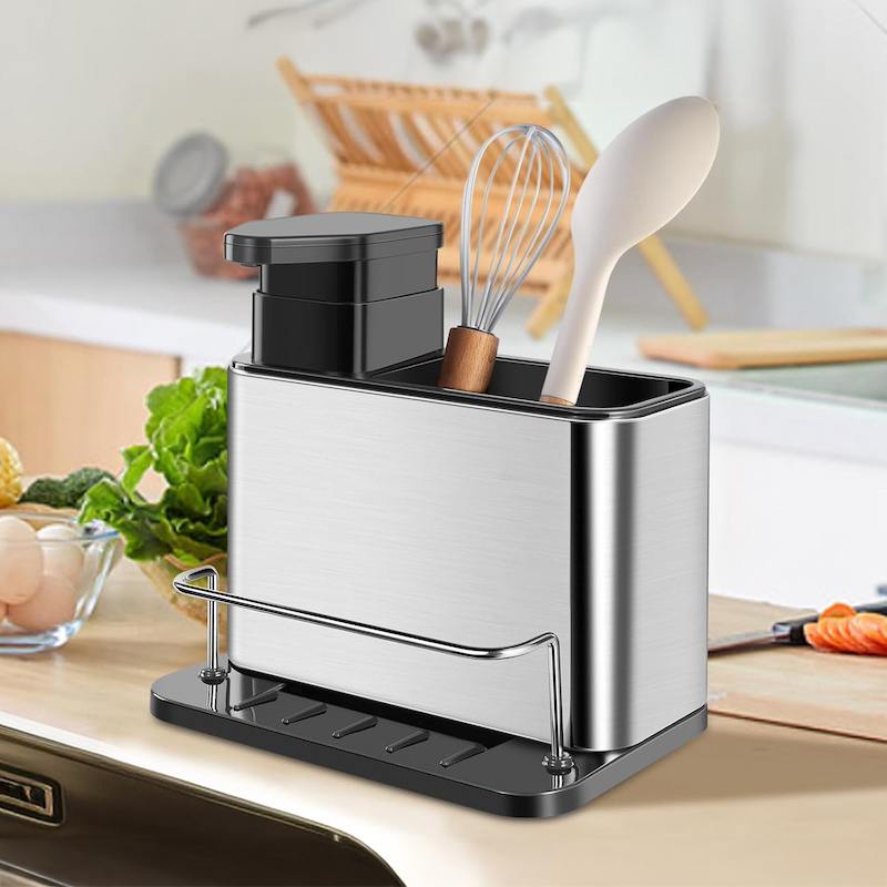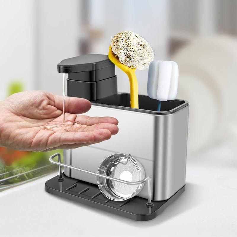 Практичний органайзер на кухню HB-19 із вбудованим диспенсером для миючого засобу забезпечує зручність та функціональність. Спеціальний тримач для губок з дозатором рідкого мила та миючого засобу робить процес миття посуду ще ефективнішим.