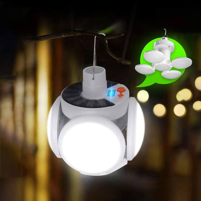 Світлодіодна лампа має високий ступінь яскравості та 4 режими освітлення, які перемикаються за допомогою однієї кнопки. Світильник заряджається від електромережі або через USB-порт від ноутбука, pawer-банку та автомобіля, а сонячна панель дозволяє підзарядити його навіть коли немає джерела енергії