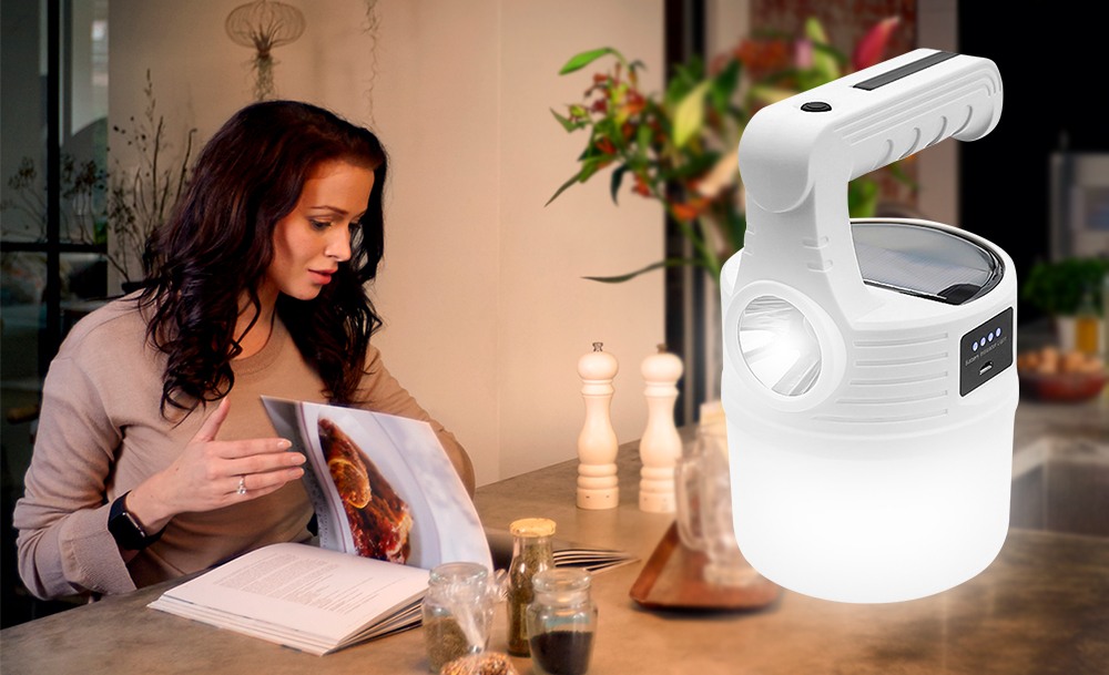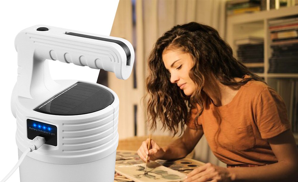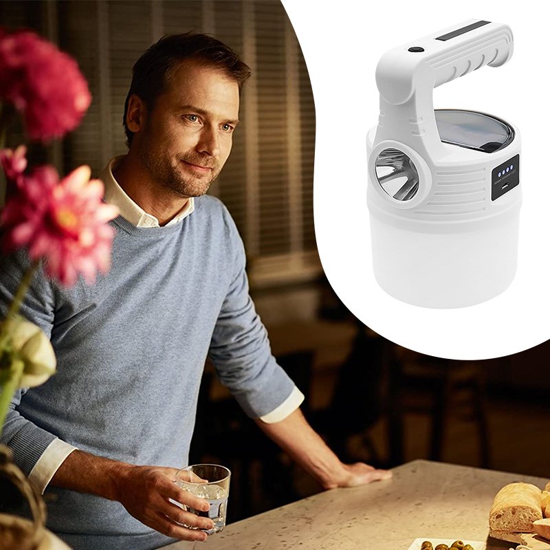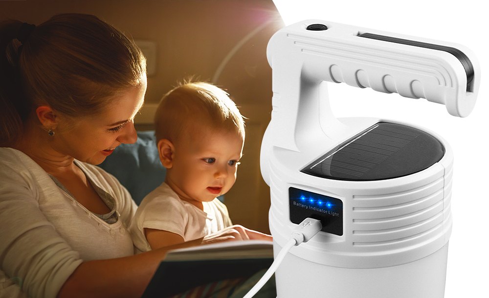 Ліхтар має вбудований акумулятор і сонячну панель, а також USB-порт, що дозволяє заряджати його від мережі, гаджетів та енергії сонця, і використовувати навіть при регулярному відключенні електрики. За допомогою зручної ручки лампу можна переносити та підвішувати у будь-якому потрібному місці.