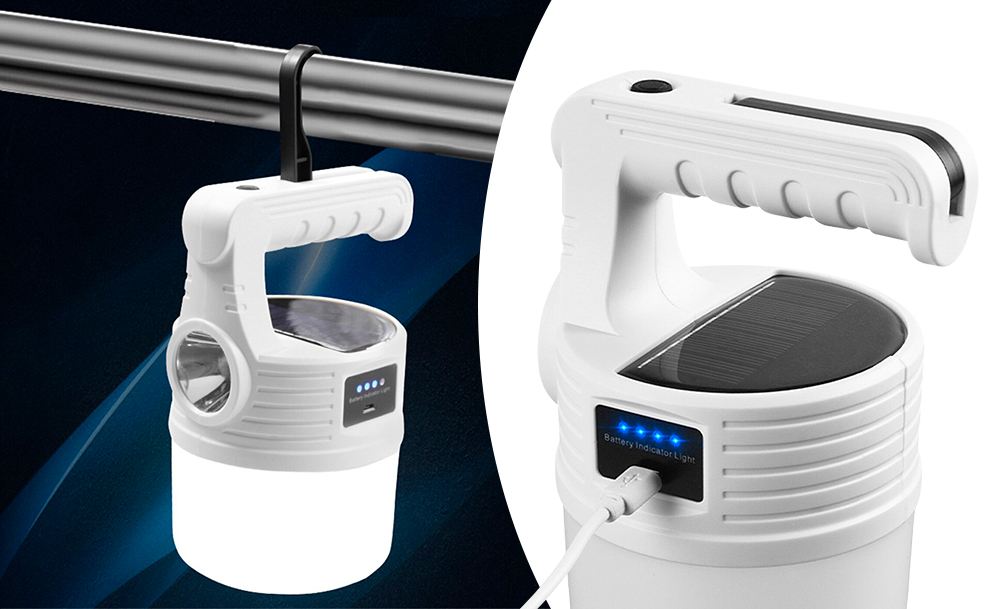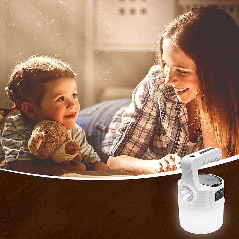 Підвісна ручна лампа-ліхтар на акумуляторі із сонячною панеллю – це універсальний прилад, що дозволяє використовувати його як на вулиці, так і у будь-якому приміщенні – вдома. Різні режими освітлення дозволяють регулювати потужність від м’якого приглушеного до яскравого світла.