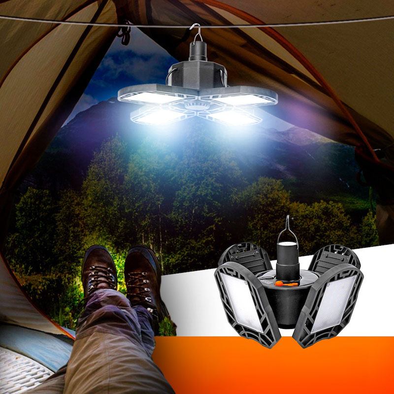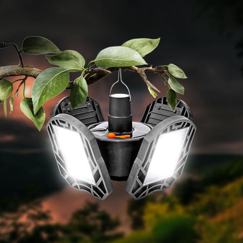 Підвісна USB лампа з сонячною батареєю незамінна у темний час доби; її можна використовувати в будь-якому приміщенні, на вулиці, у дворі, на природі або в наметі, підвісивши за вбудований гак. Трьохстулкова складана акумуляторна лампа має високий ступінь яскравості та 4 режими світіння.