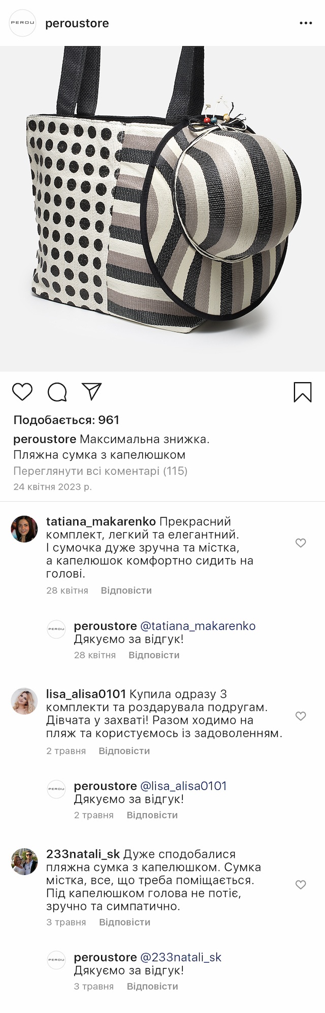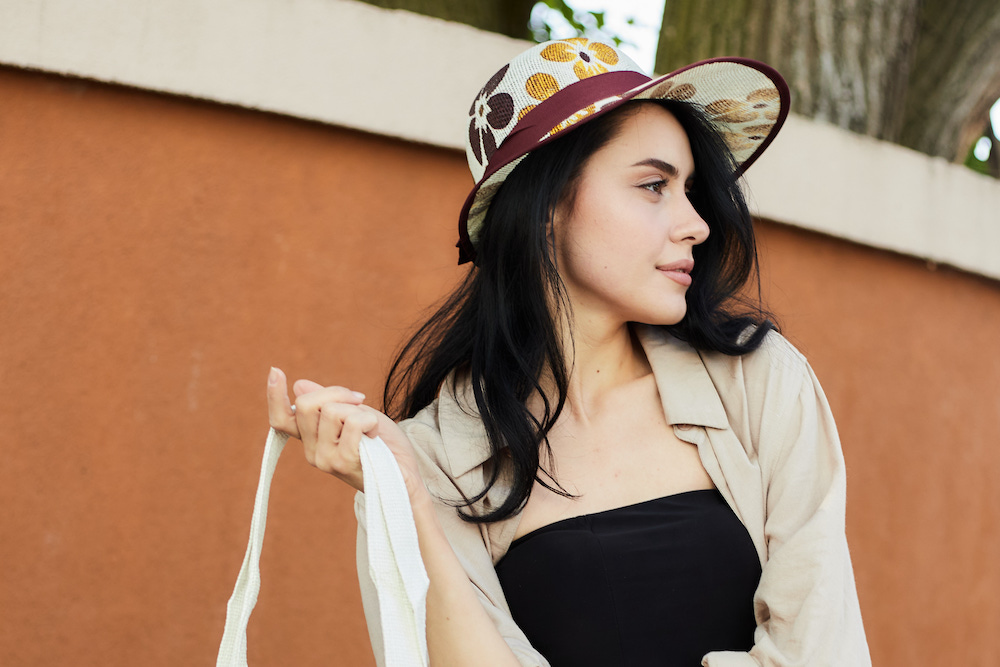 Щільний матеріал, з якого вона виконана, добре тримає форму, не мнеться та не ламається. Довгі міцні ручки дозволяють носити сумку на плечі. Капелюшок захистить голову від перегріву, а обличчя та шию – від шкідливого впливу ультрафіолету та яскравих сонячних променів, дозволяючи комфортно відпочивати на природі тривалий час.