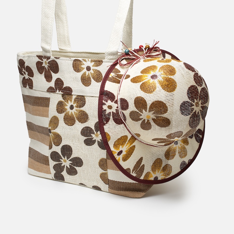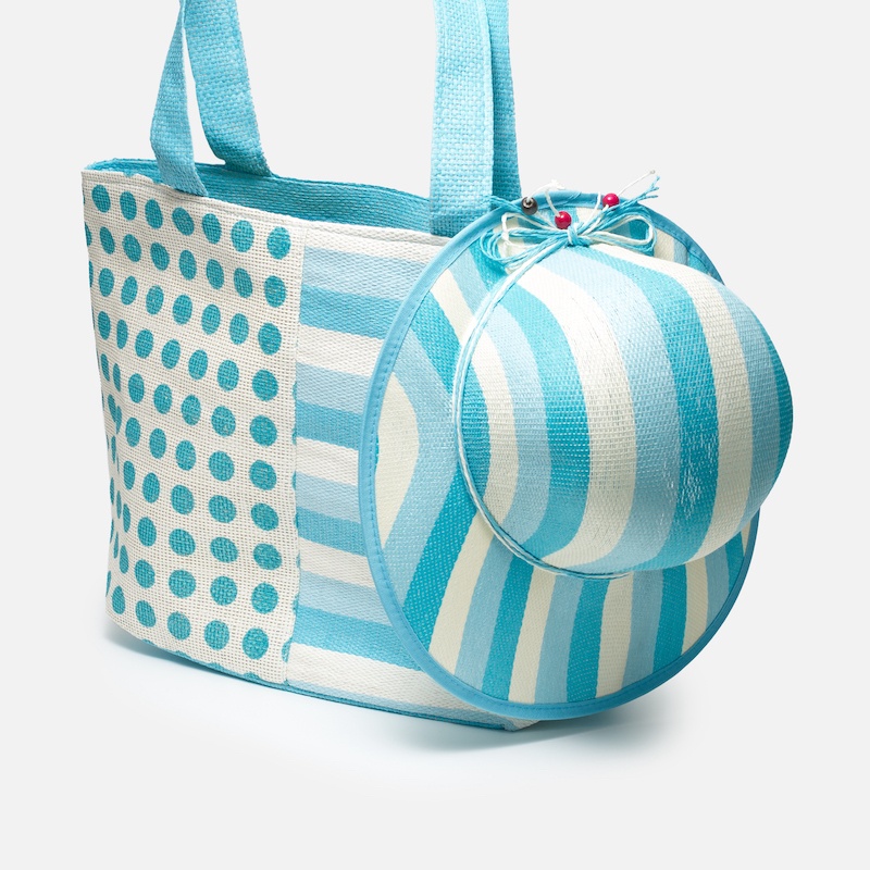 Комплект складається, в одному стилі, з пляжної сумки та жіночого капелюшка та стане чудовим доповненням літнього образу. У сумку невелику та елегантну, але дуже містку, легко ввійде все, що необхідно для пляжного відпочинку.