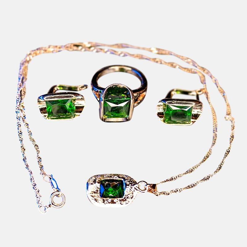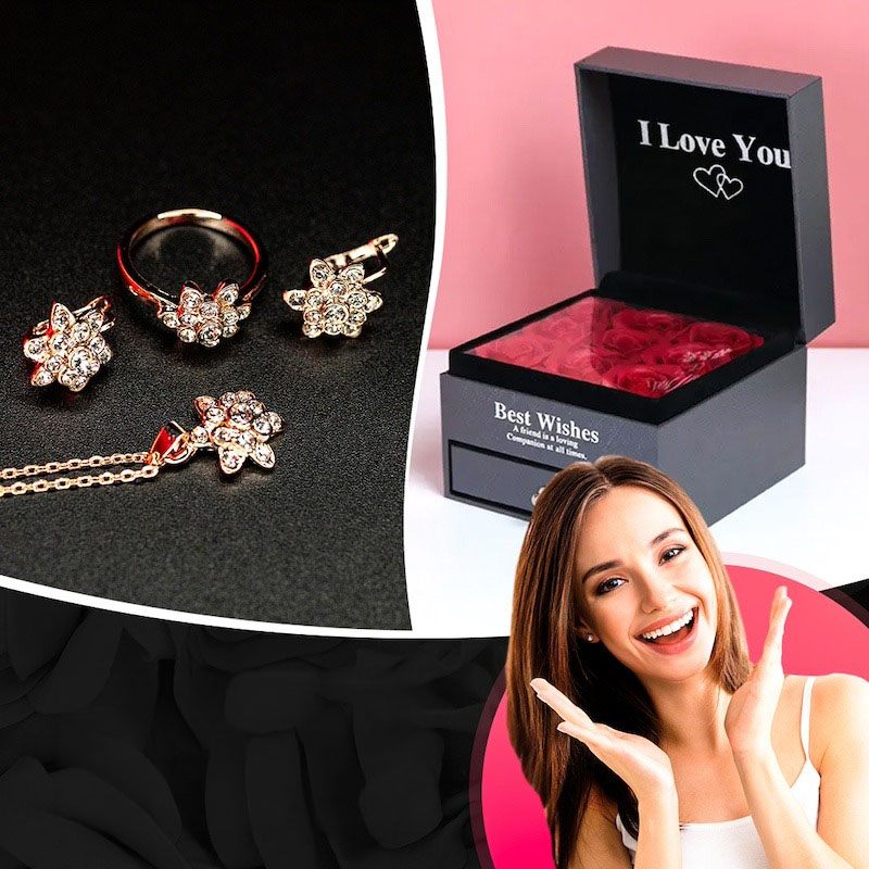 Стильне пакування має другий висувний ярус, куди можна покласти будь-що, наприклад, Булатний набір з фіанітами 4 в 1. Прикраси виконані з якісних матеріалів. Вони прослужать тривалий час і довго радуватимуть своєю витонченістю та вишуканістю.