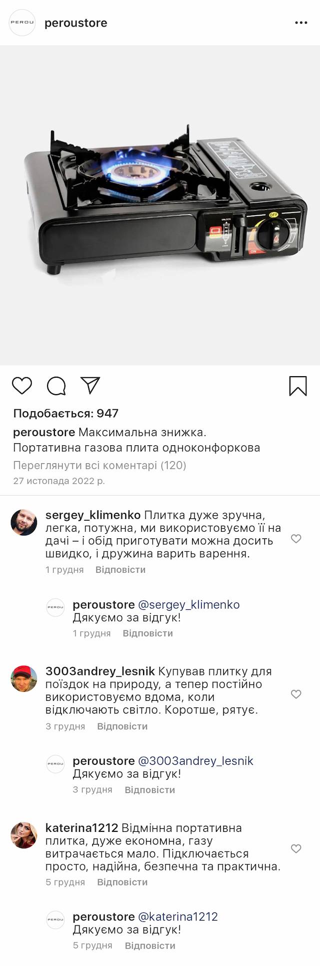 Вона досить потужна, щоб розігрівати чи готувати їжу, до того ж має вітрозахисний екран, який забезпечує економну витрату газової суміші. Плиту можна підключити до цангового або звичайного газового побутового балона, вона добре працює навіть при низькому тиску газу.