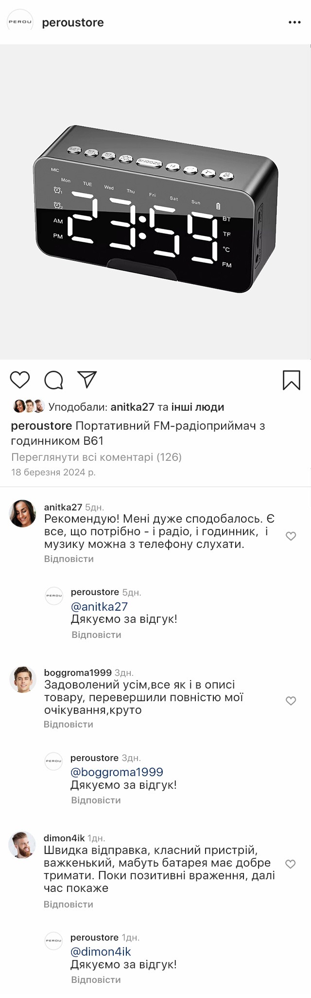 Безпровідний портативний радіоприймач – це універсальний пристрій, оснащений годинником, будильником і градусником, що робить його практичним й функціональним. Невеликі розміри та легкість радіоприймача дає можливість використовувати його не лише вдома, а й у поїздці, на дачі чи природі.