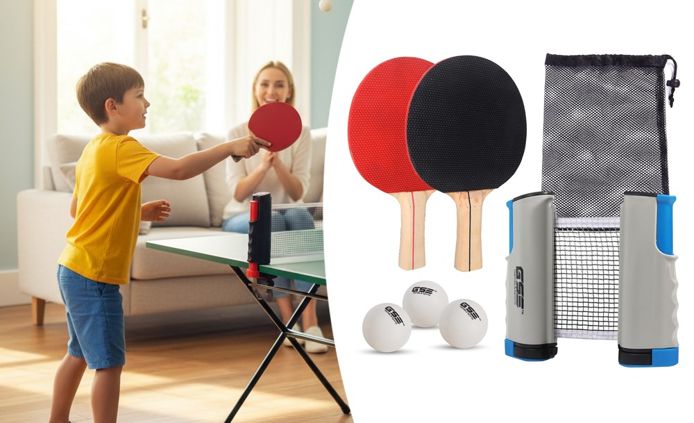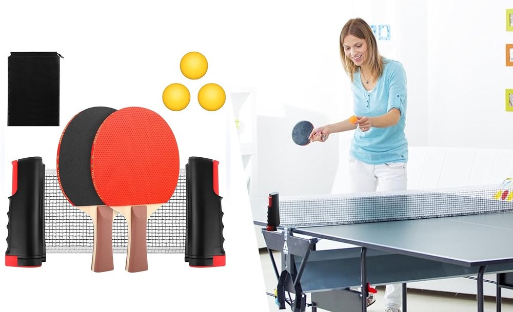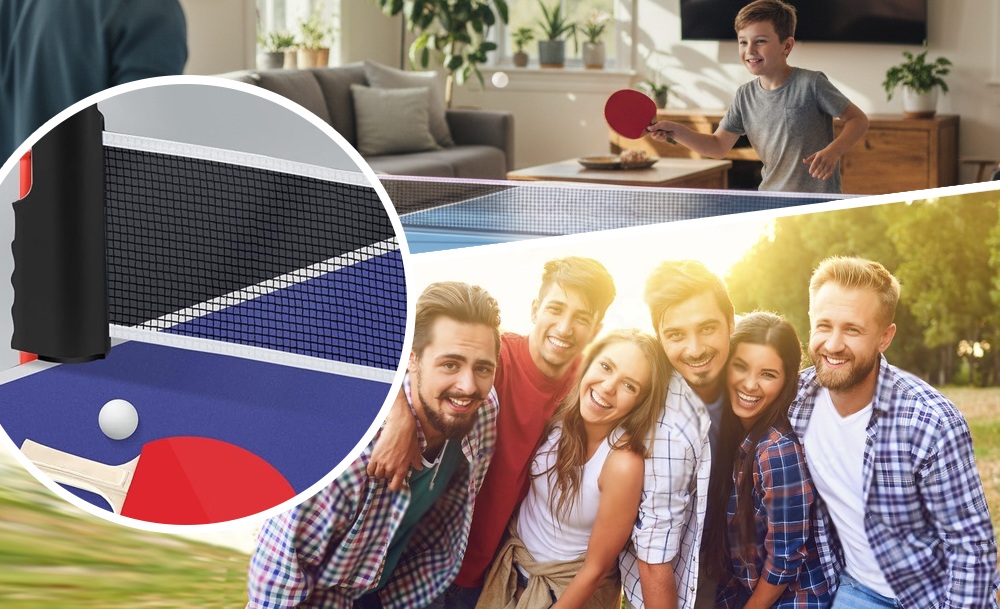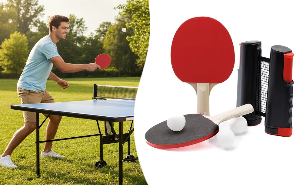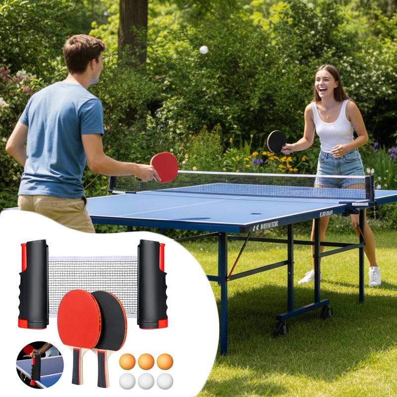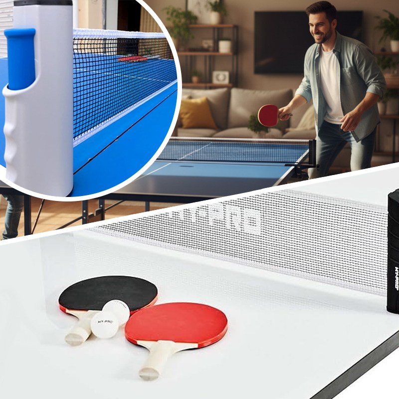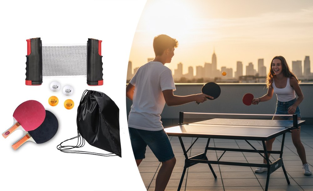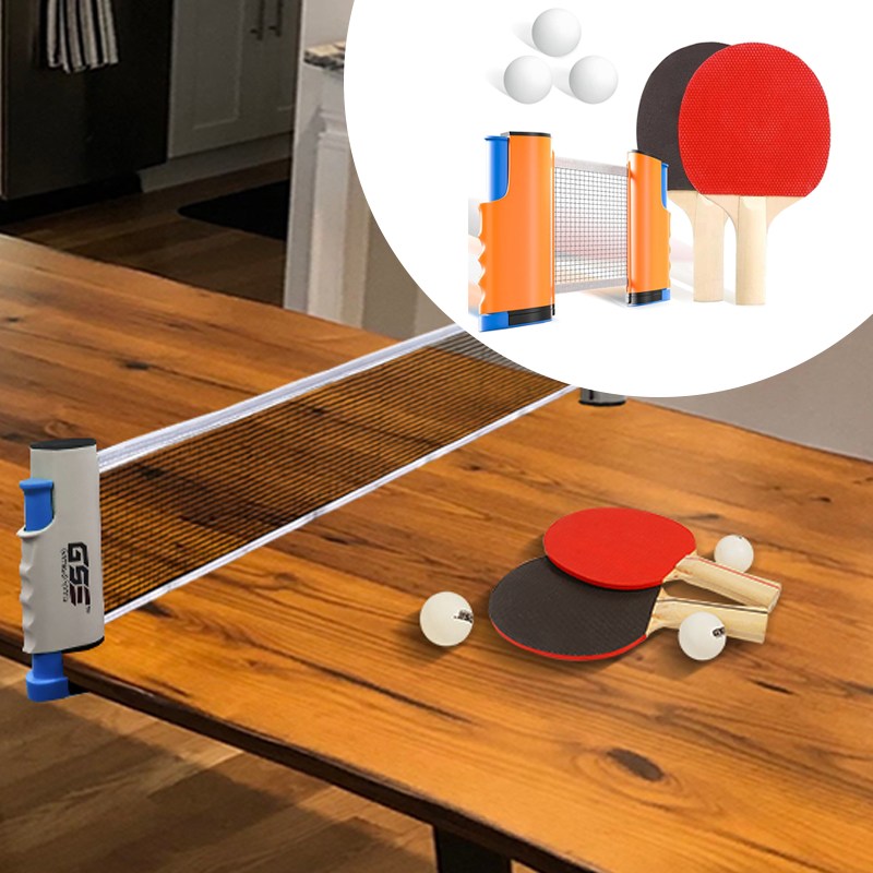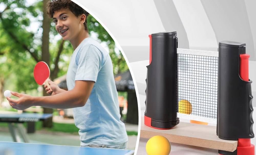 Портативний набір для настільного тенісу з висувною сіткою, ракетками та м’ячами — це зручний комплект, який дозволяє влаштувати гру в пінг-понг у будь-якому місці. Сітку можна швидко розгорнути на будь-якій підходящій поверхні. Вона легко фіксується і так само просто складається назад.