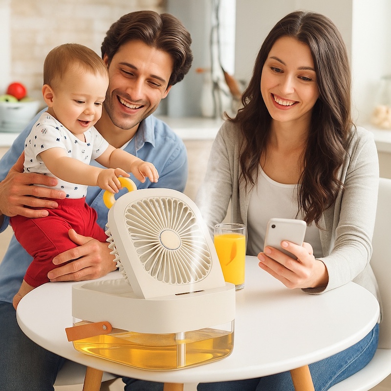 Портативний вентилятор-зволожувач повітря 3 в 1 Dual Spray — це розумне рішення для комфортного мікроклімату в будь-якому просторі. Поєднуючи функції охолодження, зволоження та атмосферного підсвічування, він ідеально підходить для дому, офісу чи подорожей. Два режими розпилення води рівномірно зволожують повітря, знижуючи сухість і напругу.