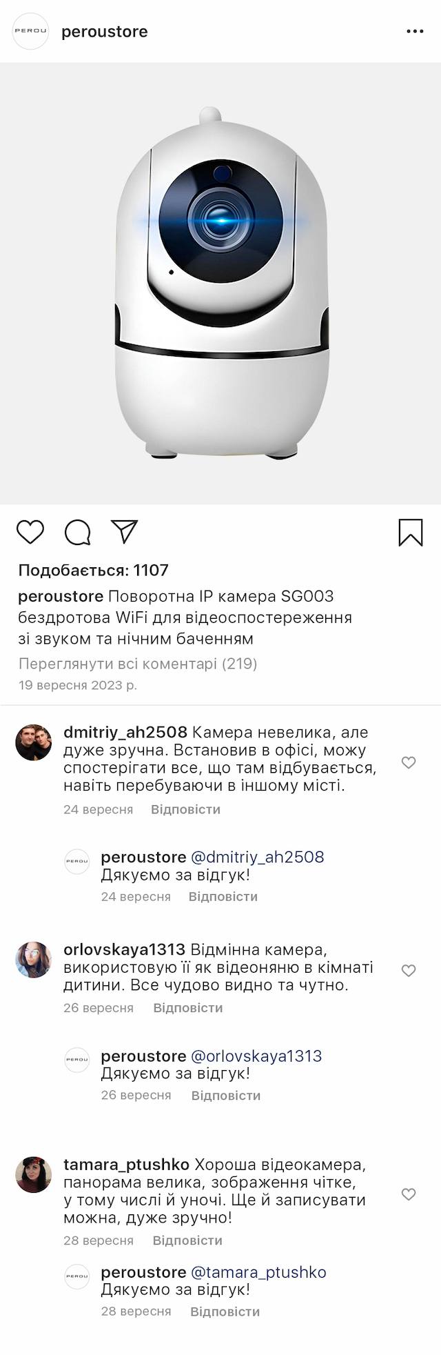 Вбудований поворотний механізм забезпечує максимальний огляд, а динамік та мікрофон дозволяють не лише слухати все, що відбувається навколо, а й вести діалог. Завдяки інфрачервоній підсвітці камера вночі створює таке ж чітке зображення, як і вдень, даючи можливість відстежувати все, що відбувається з будь-якої точки.