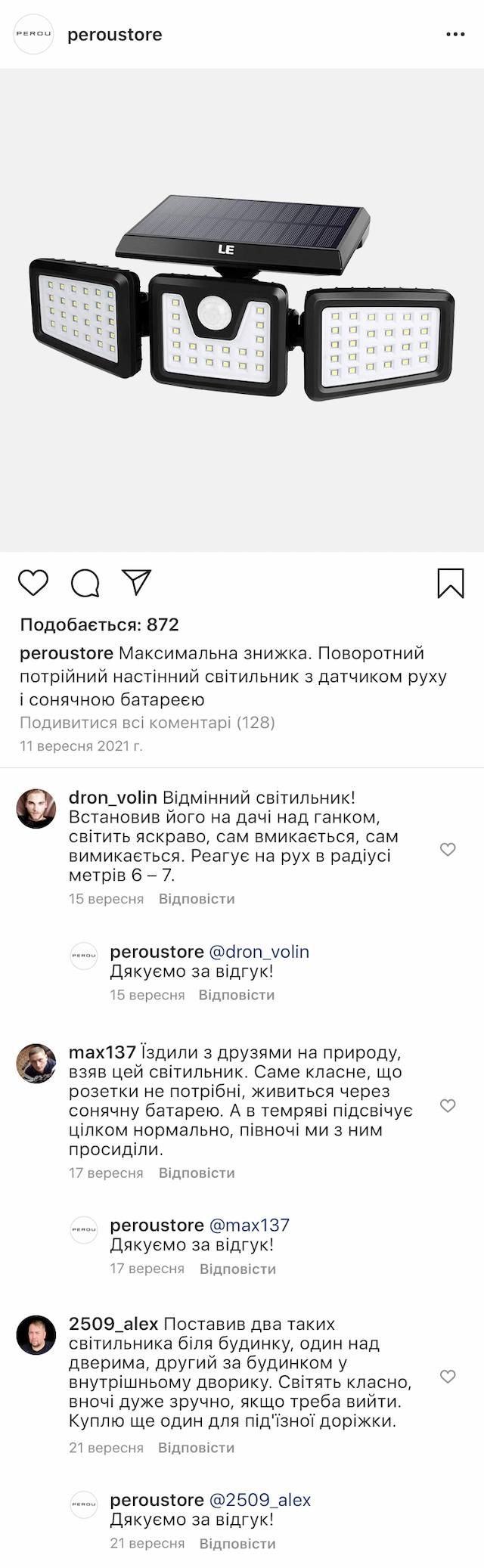 Світильник не потрібно підключати до джерела електроенергії: сонячна батарея накопичує заряд світла в денний час і яскраво світить в темряві. Поворотний механізм дозволяє направити світловий потік в потрібному напрямку. Світильник оснащений датчиком руху: він вмикається при наближенні людини і сам вимикається, якщо руху немає.