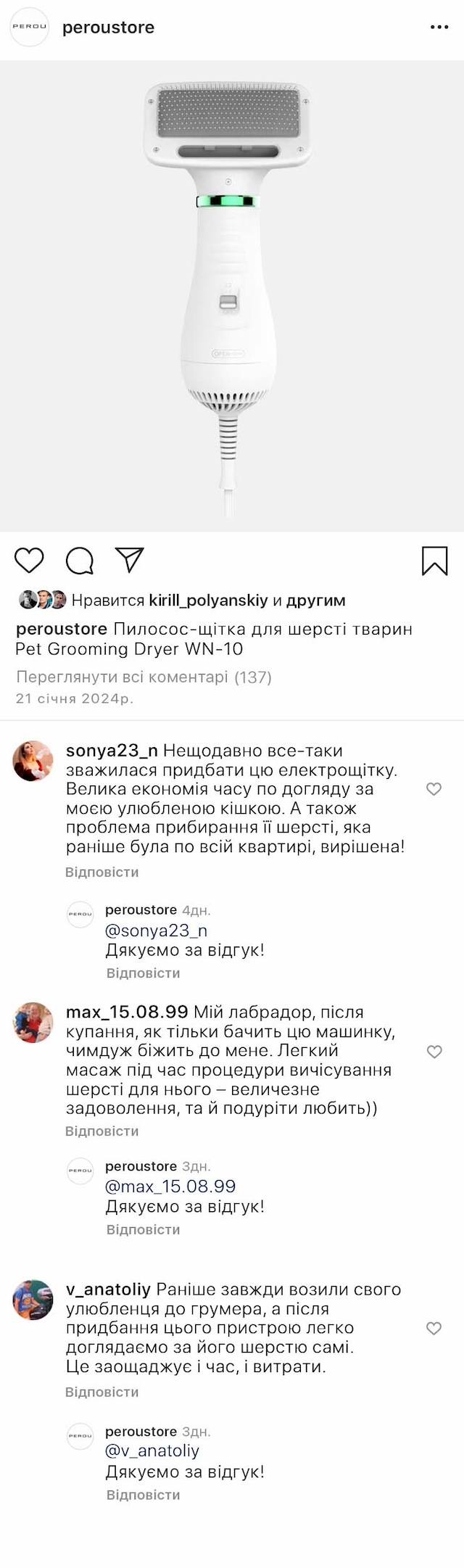 Фен-щітка для шерсті тварин – це високоефективний пристрій, призначений для догляду за домашніми улюбленцями з довгою та середньою шерстю. Пристрій працює тихо за допомогою технології шумопоглинання, тому не викликає страху у тварин.