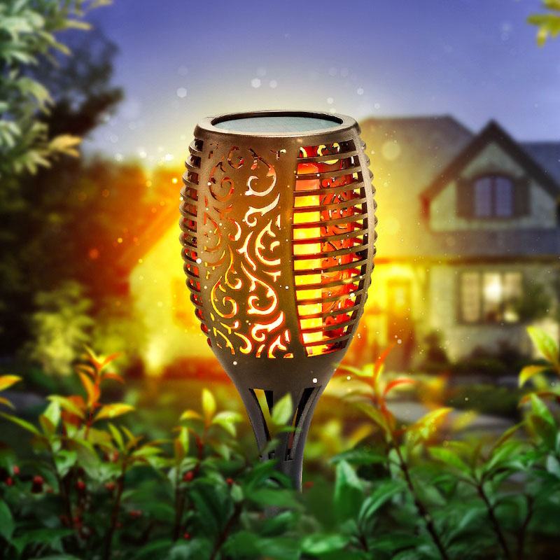 Садовий ліхтар «Факел» на сонячній батареї з ефектом полум’я – це ідеальне рішення для заміського будинку та саду, що виконує відразу дві функції – освітлення та декор. Він не вимагає підключення до електричної мережі, заряджається від енергії сонця та працює від вбудованого акумулятора.