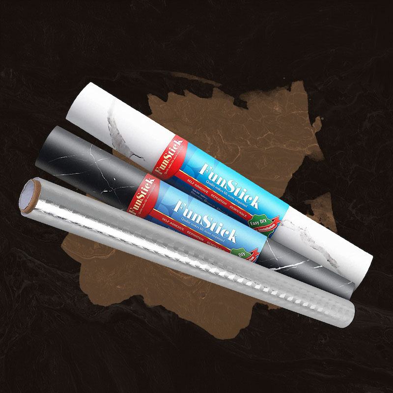 Самоклеюча плівка – це ідеальне рішення, щоб легко і швидко оновити інтер’єр і надати йому стильний зовнішній вигляд. Плівка представлена у трьох варіантах – забарвлення чорного і білого мармуру та алюмінієвої фольги.