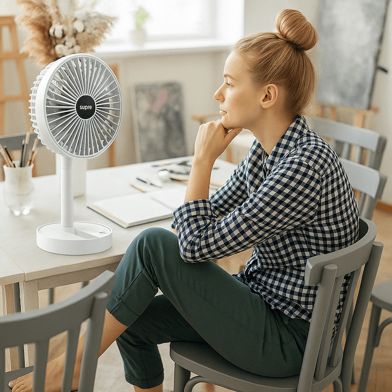 Міні-вентилятор WX 6505 охолоджуватиме, забезпечуючи приємний потік повітря. Це чудова альтернатива для дорогих кондиціонерів, які зазвичай мають велике енергоспоживання, що, на жаль, призводить до збільшення рахунків за електроенергію. Його можна розмістити у будь-якому місці.
