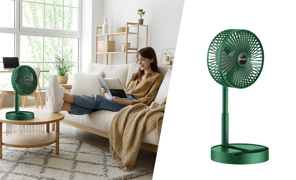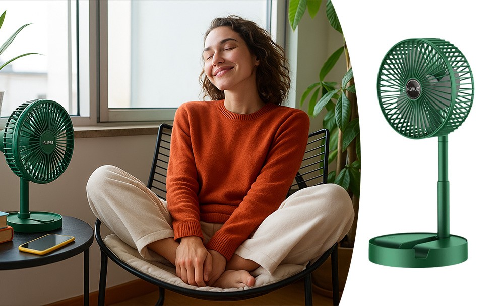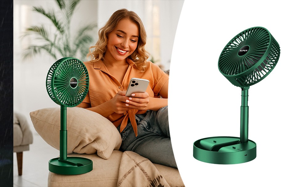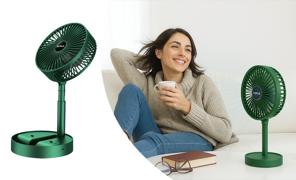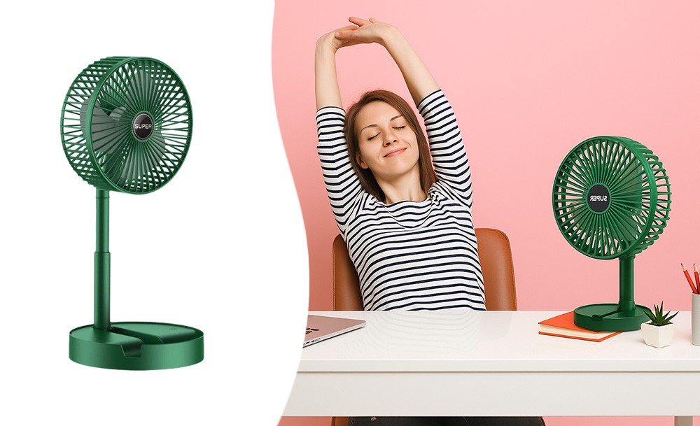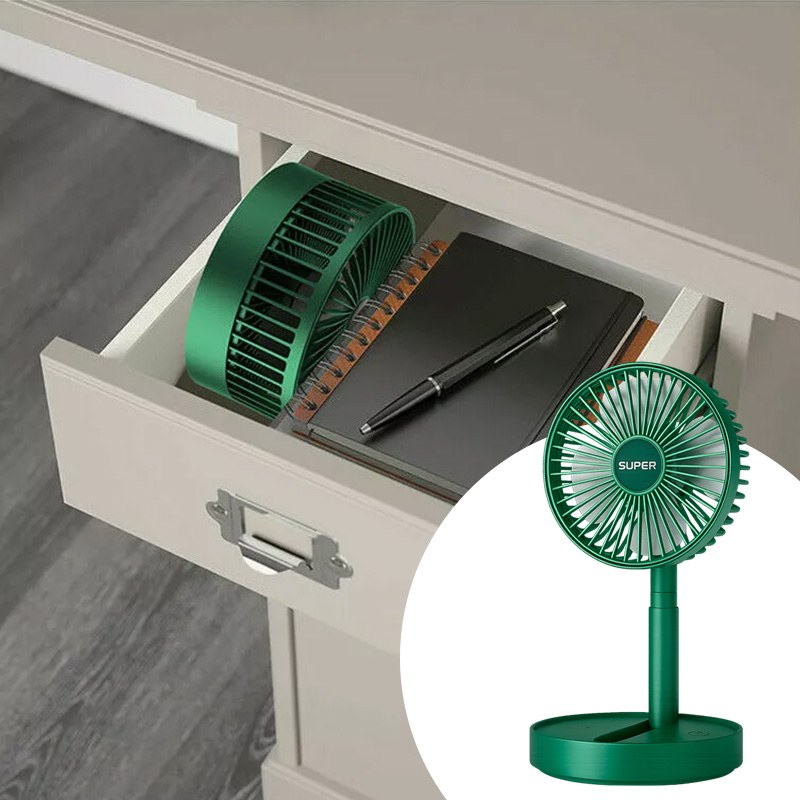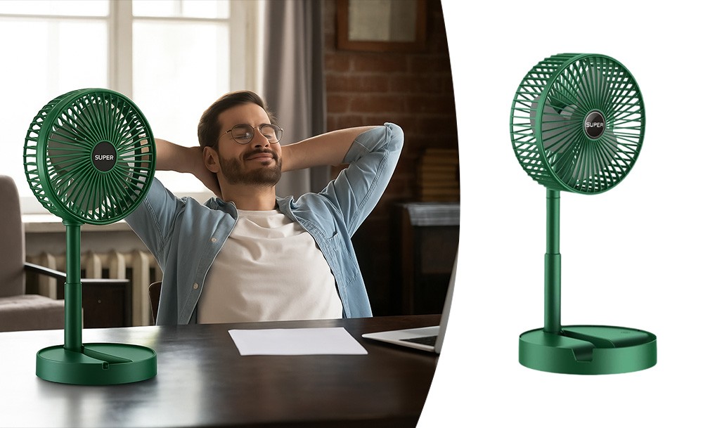 Він виготовлений з міцного матеріалу АБС-пластика, що робить його надзвичайно легким і не займе багато місця. Вентилятор можна скласти, він легко поміститься у сумочці чи рюкзаку. Ви можете успішно взяти його з собою на роботу або у подорож.