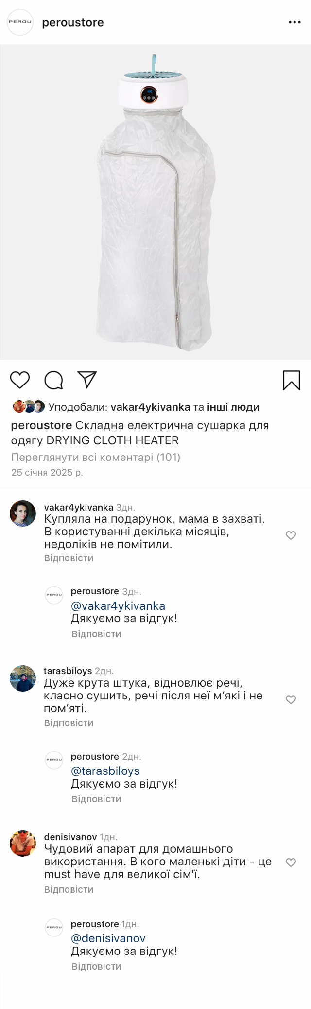 Портативна сушарка для одягу забезпечує всебічне висушування різних матеріалів, включаючи верхній одяг та дитячі речі. Ідеально підходить для використання вдома.