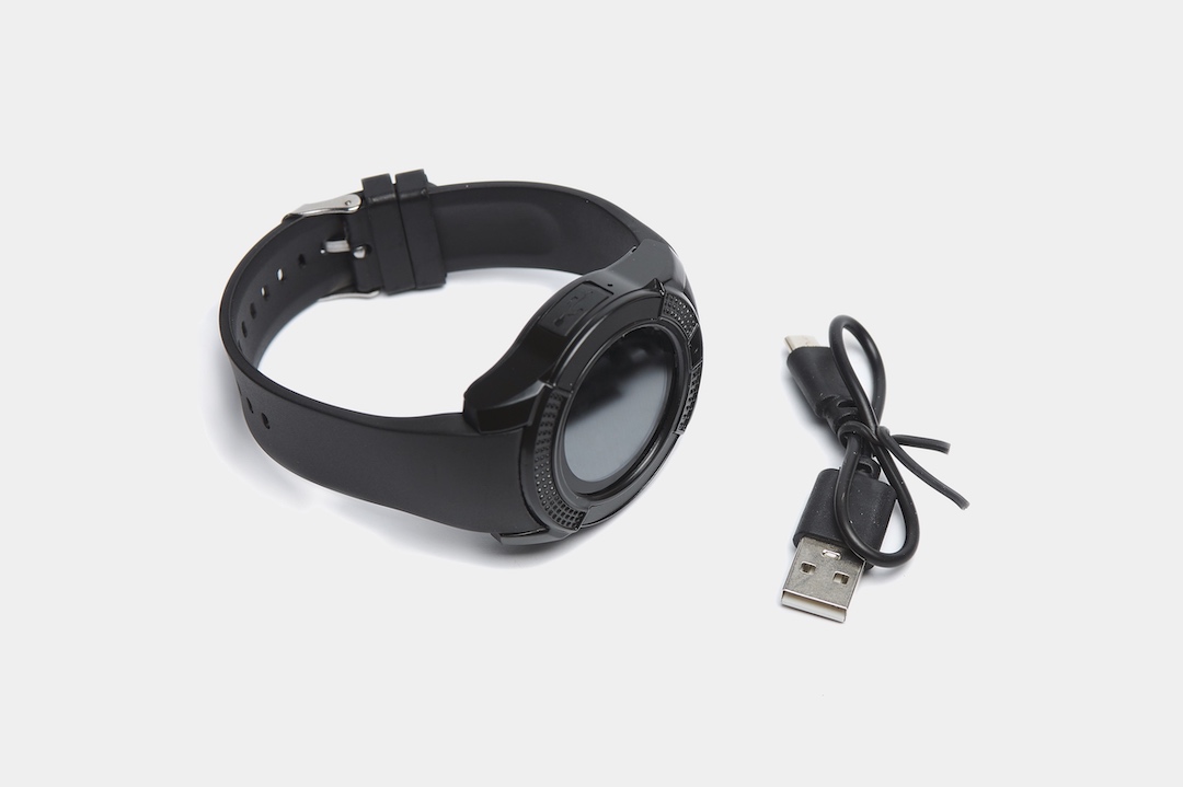 Такий девайс може навіть замінити телефон. З лівого боку розташований роз’єм для зарядки мікро-USB, закритий гумовою заглушкою, з правого – 2 кнопки. Під задньою кришкою знаходяться з’ємний літієвий акумулятор, слот для сім карти мікро-SIM, а також слот для карти пам’яті мікро-SD.