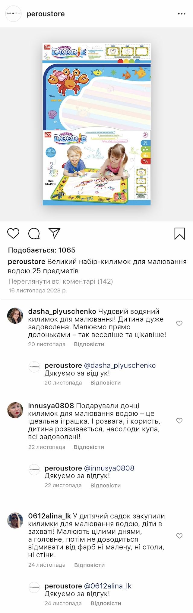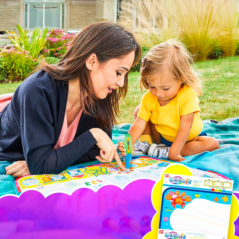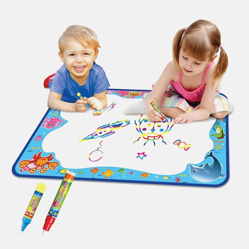 Великий набір-килимок для малювання водою сприятиме розвитку творчості, фантазії й уяви дитини та подарує їй незабутні позитивні емоції. А батьки зможуть приділити собі трохи часу, поки дитина малює та оцінять чистоту стін, шпалер, меблів і малюка, адже спеціальні маркери заправляються звичайною водою без використання фарб і чорнил, а також не залишають слідів.